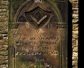 La làpida de la tomba de Thomas Brierley a l'església de Mellor, a Cheshire, és un bon exemple de l'ús del xifratge de la cort dels porcs fet pels francmaçons al segle XVIII. Fixa't en els símbols dels quadrats i el compàs maçònic. És difícil desxifrar el text a causa de l'erosió atmosfèrica que presenta la làpida. El text xifrat sembla que també utilitza un símbol no estàndard per a la lletra S. El text superior de la làpida diu "Thomas Brierley made his ingress July 16th 1785" (Thomas Brierley va fer el seu ingrés el 16 de juliol de 1785).
