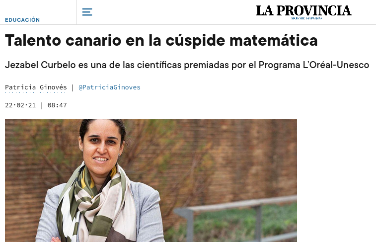 [1 May 2022 (news)] Diario de Avisos, Jezabel Curbelo, the young mathematician from Los Realejos, who accumulates awards for her research.