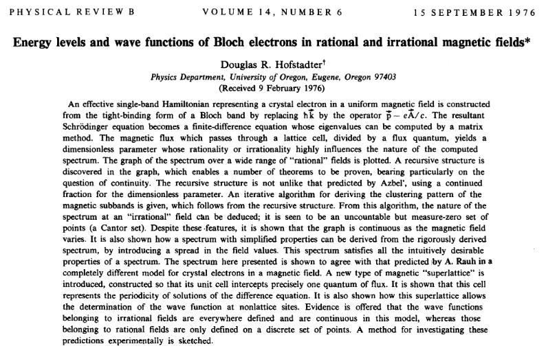 Theorem 2 (Ten Martini Problem 1981-2006) The set \(\sigma_\omega\) is a Cantor set if \(\omega\) is irrational: