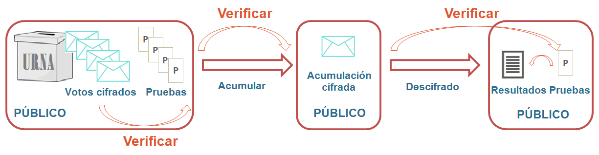 Los esquemas de recuento homomórfico son muy adecuados para proporcionar propiedades de verificabilidad, ya que casi todas las operaciones se pueden hacer de forma pública y, para las que no (descifrados parciales, etc.), se pueden proporcionar pruebas universalmente verificables que demuestren que se han hecho bien. Por universalmente verificables entendemos que, al no requerir de datos secretos para hacer su validación, pueden ser verificadas por cualquiera. No obstante, los inconvenientes de estos esquemas, comentados en la sección 2, hacen que sean poco flexibles y costosos en general.