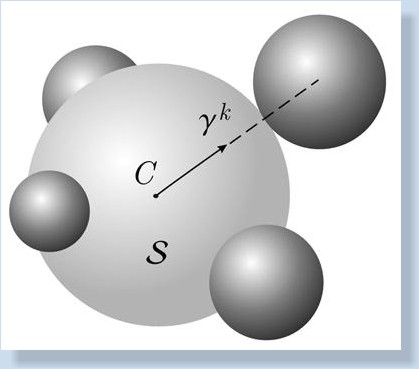 an axisymmettic ball S moves about its fixed center C,